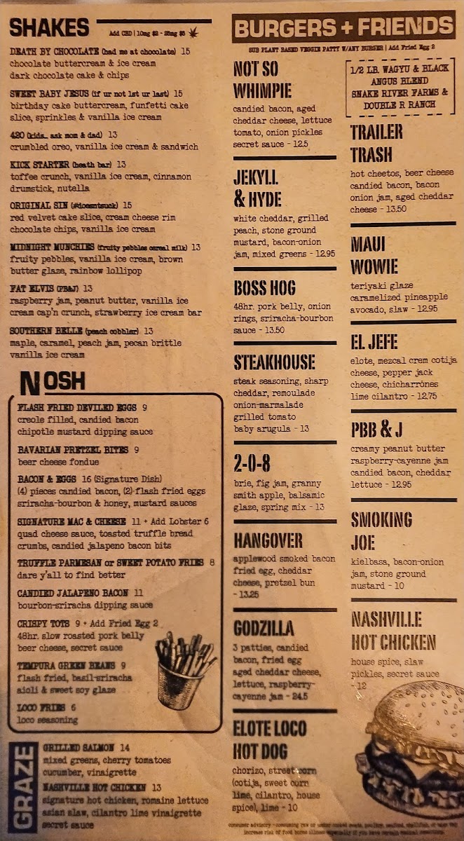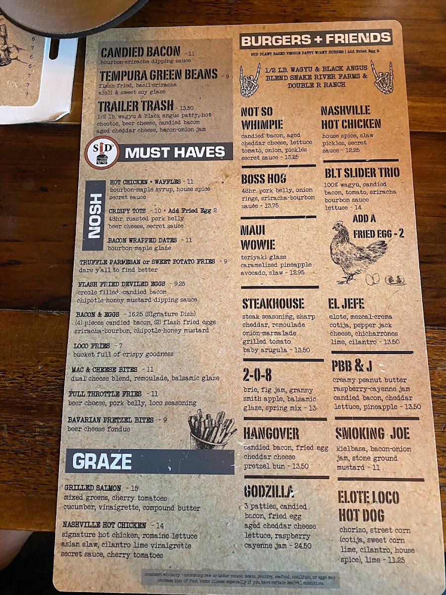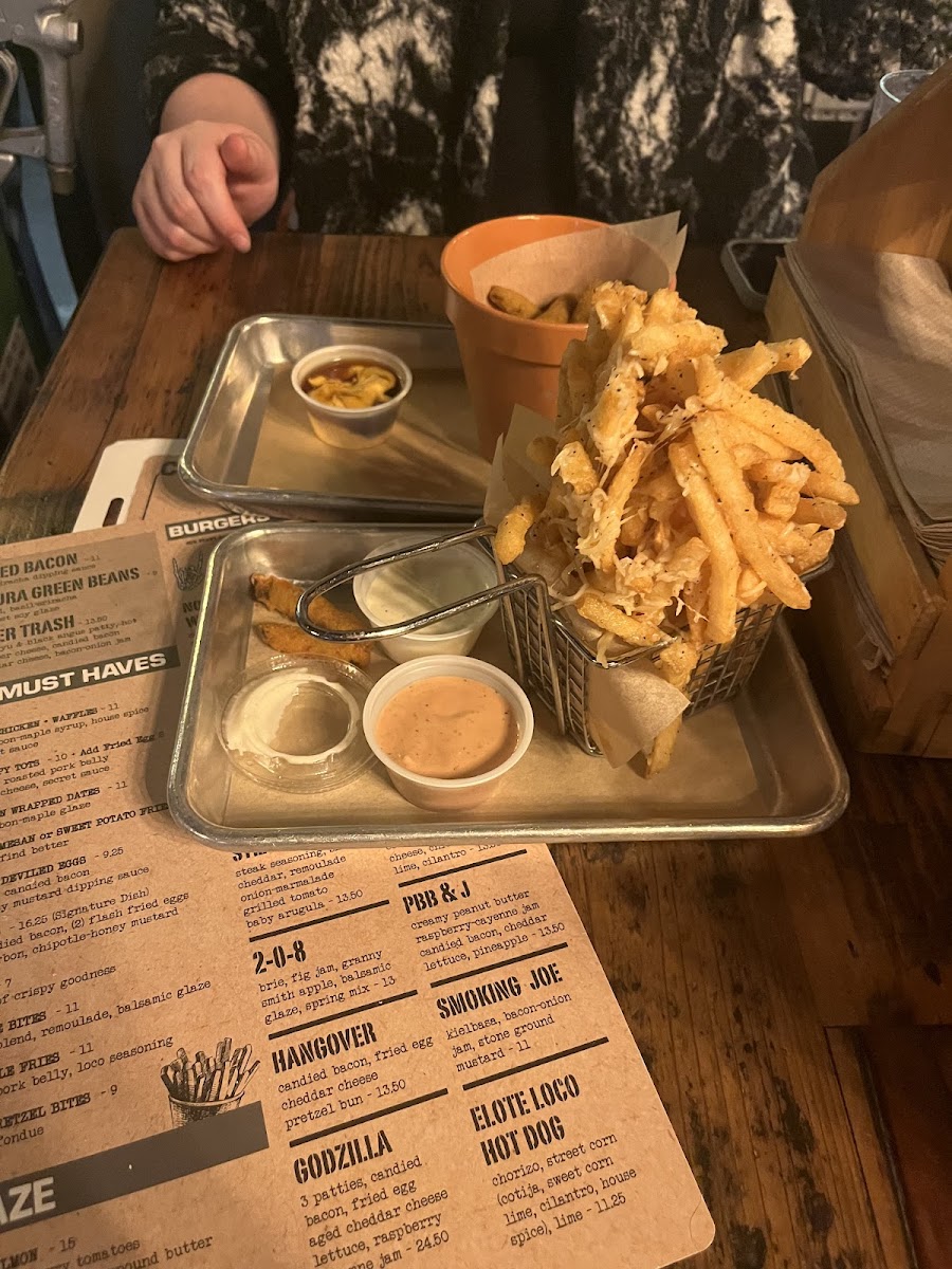- Trash Can Tots: Experience the decadence with slow-roasted pork belly, creamy beer cheese, and a zesty bang sauce.
